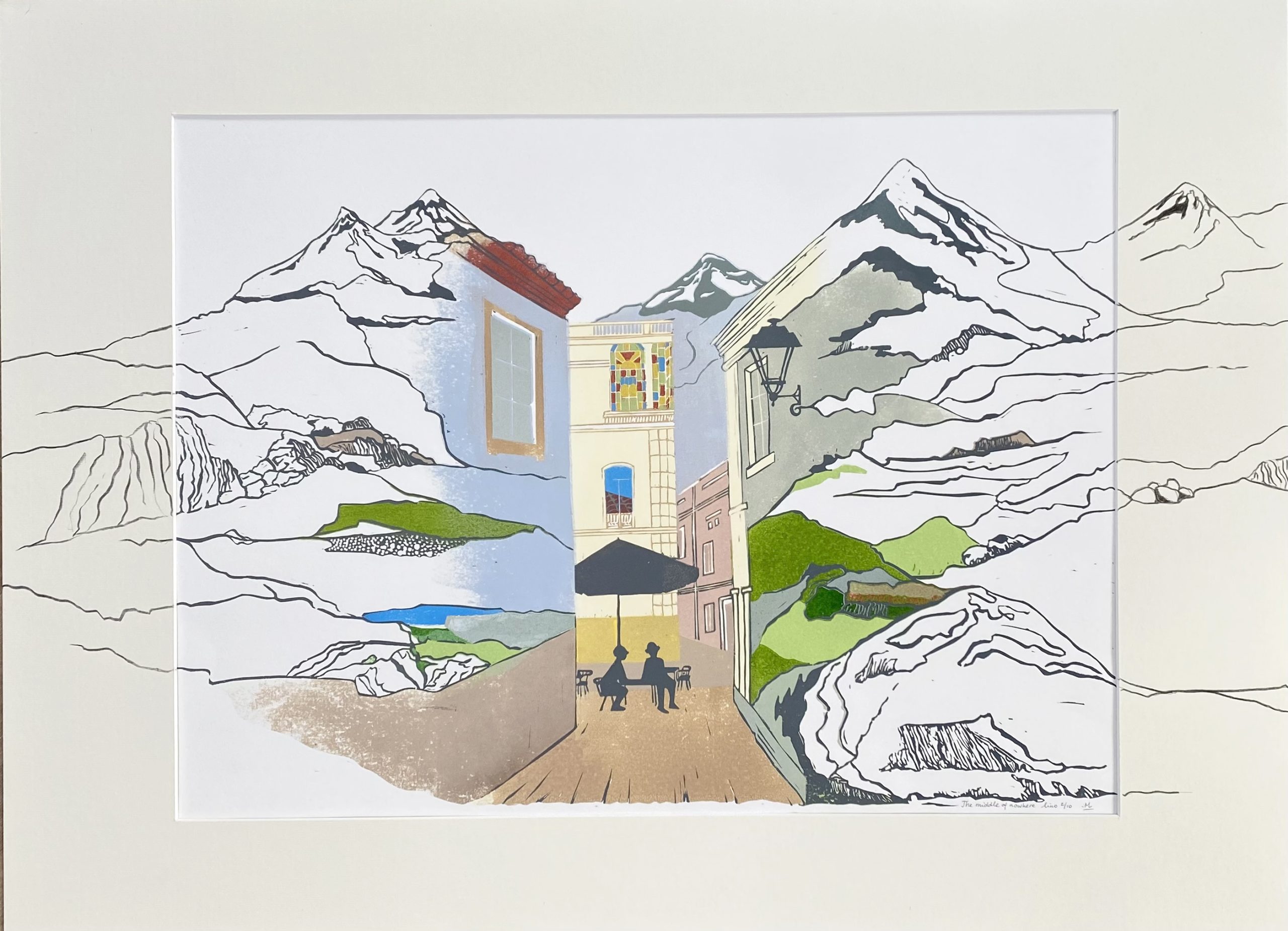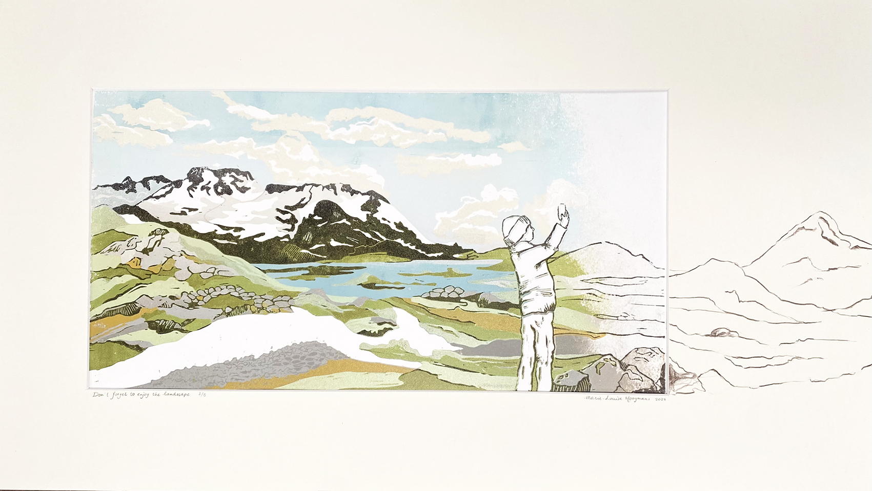 Ik maak heel graag linosnedes, geïnspireerd op mijn tekeningen en op mijn reizen. Ik vertel graag verhalen met mijn werk!